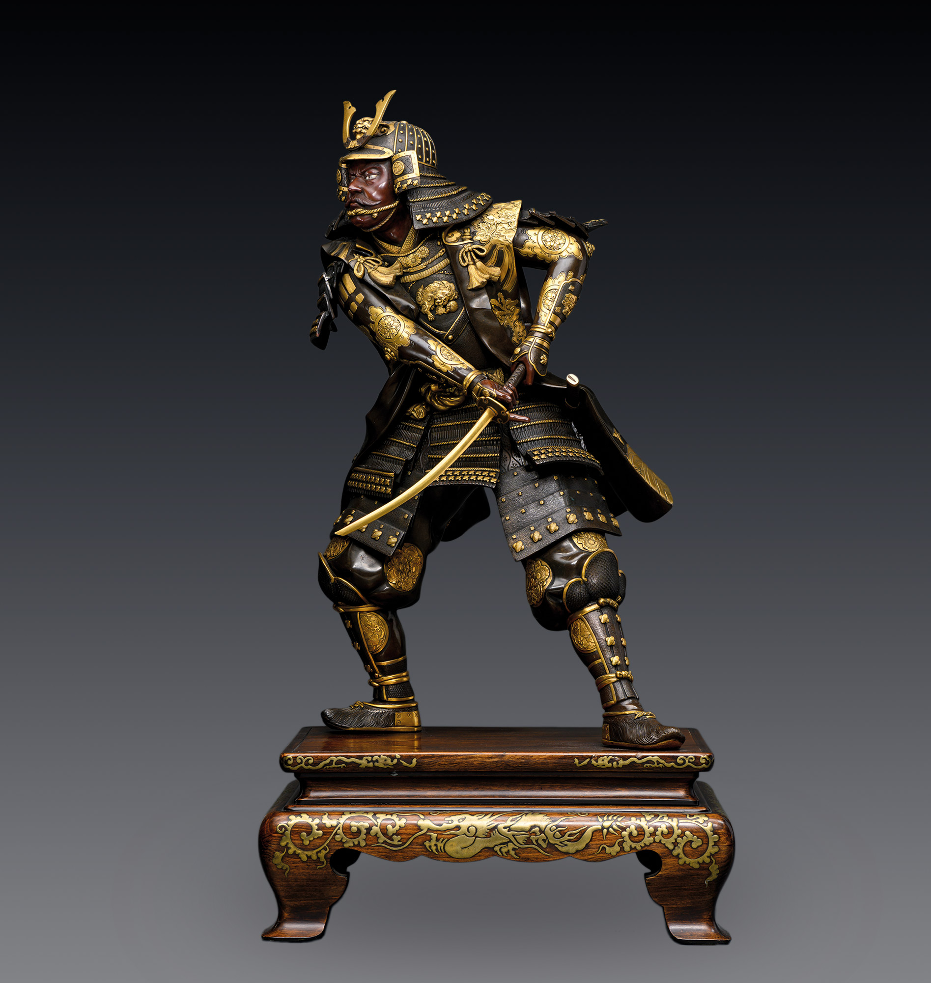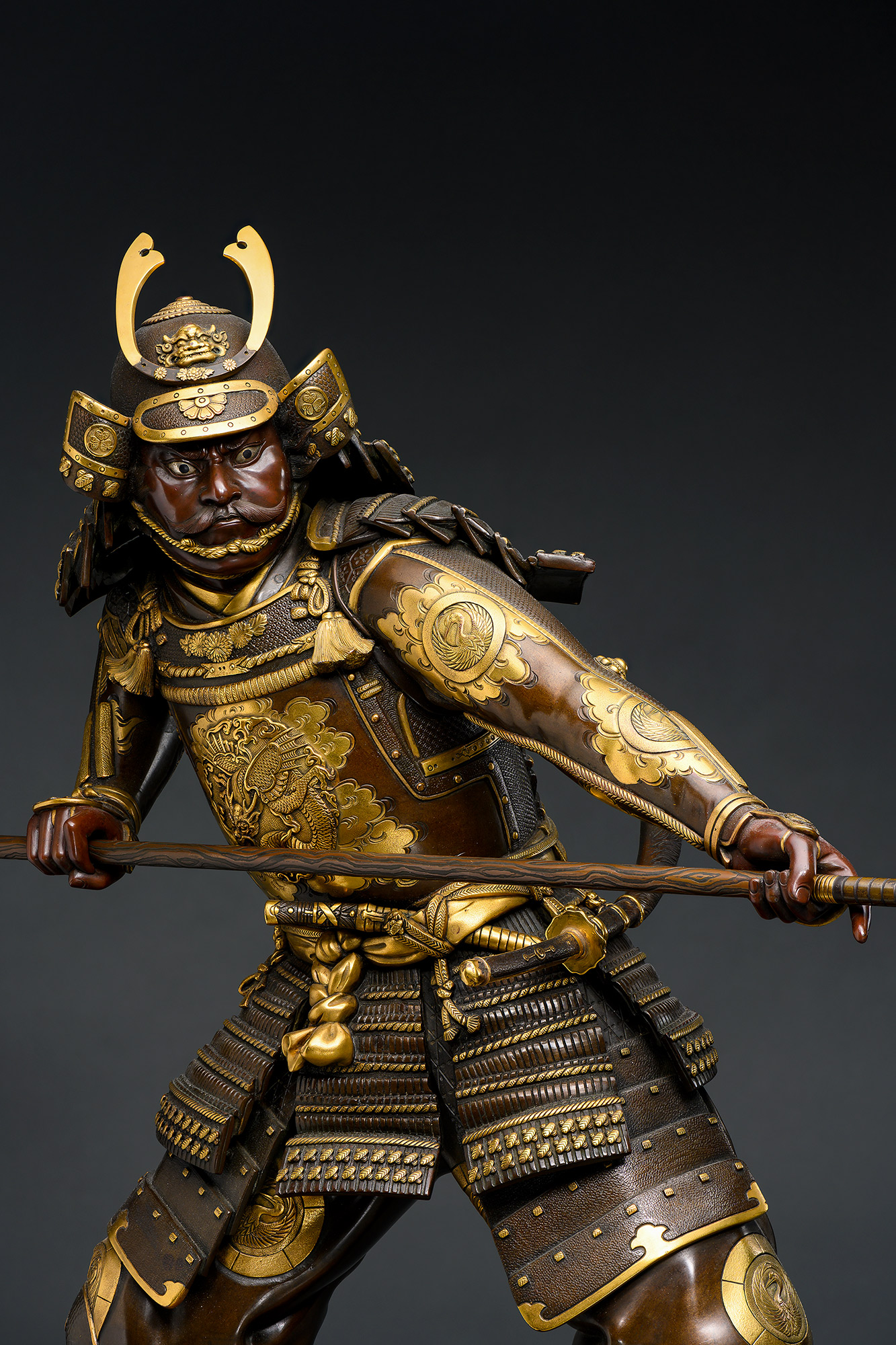 Колоссальная по своему масштабу и виртуозности исполнения, данная бронзовая скульптурная группа, изображающая самураев в разгар поединка, представляет собой выдающийся образец японского экспортного искусства периода Мэйдзи. Произведение отличается не только размерами и виртуозной техникой исполнения, но и глубокой исторической достоверностью, превращающей его в уникальную пластическую энциклопедию воинской культуры Японии.