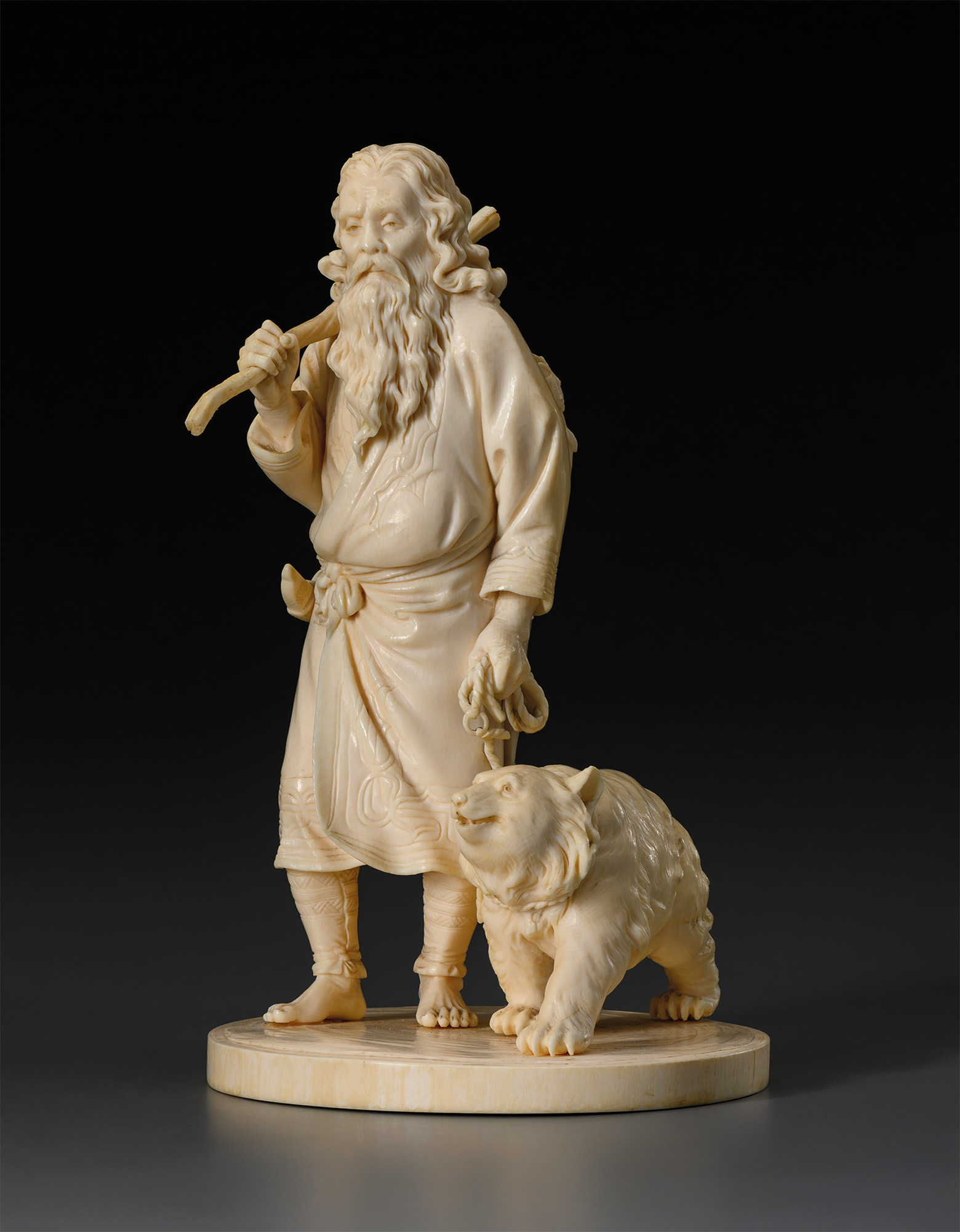 К началу XXI века народность айну насчитывала около двадцати пяти тысяч человек. Сейчас они в основном проживают на острове Хоккайдо, остальные — в центральной части Японии. Именно традиционного представителя народа айну изобразил мастер, создавший это окимоно.