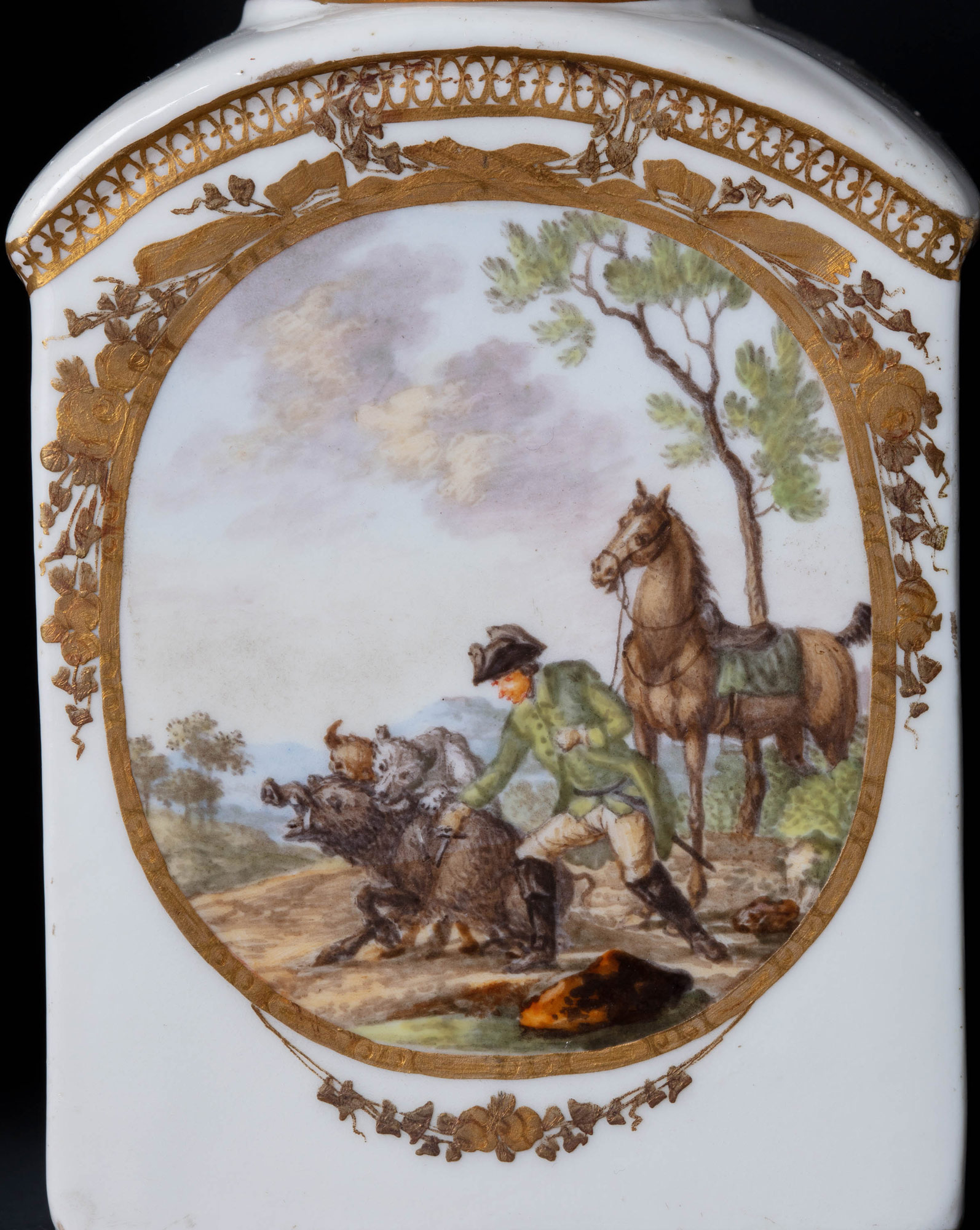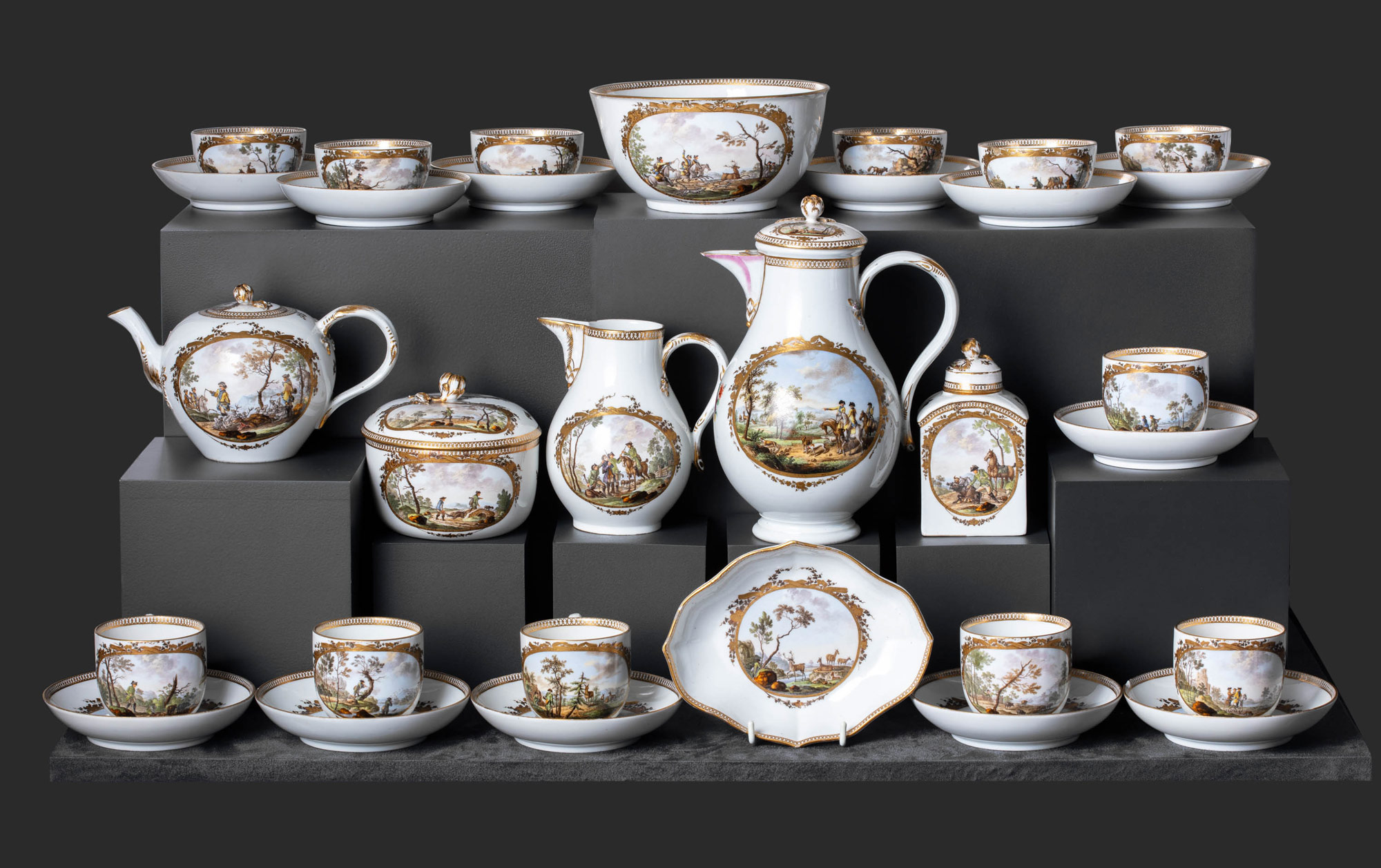 Представленный на аукцион чайно-кофейный сервиз классицистических форм с миниатюрной живописью сцен охоты в медальонах в венках — памятник декоративно-прикладного искусства музейного значения. Обозначенный дополнительной меткой в марке период с 1774 по 1814 год — это пик славы Мейсена. Усилиями директора фабрики, графа Камилло Марколини качество фарфора удерживалось на безупречном уровне. Позже в XIX века такого художественного уровня вещей больше не будет.