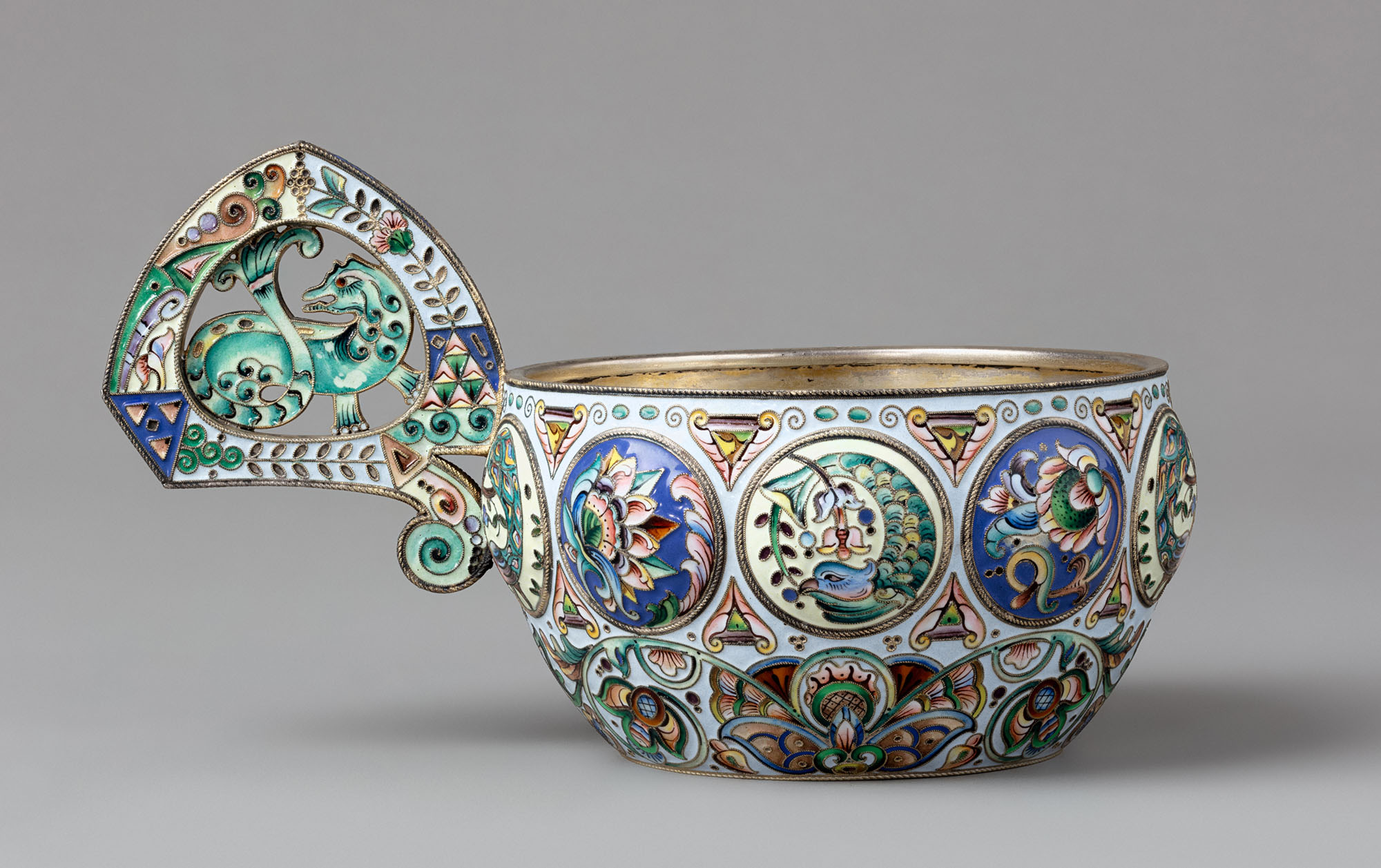 Серебро; литьё, чеканка, эмаль по скани, выемчатая эмаль, золочение