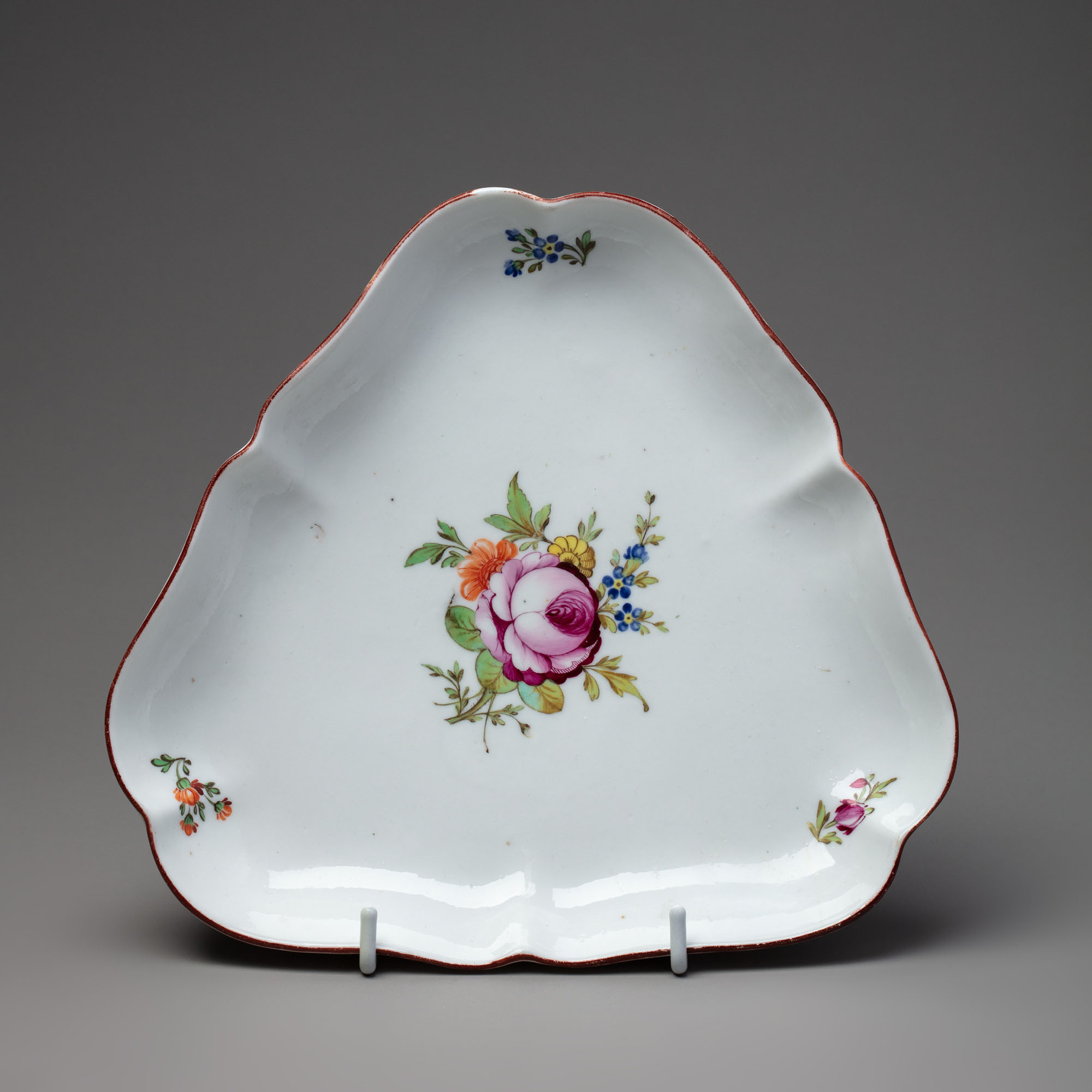 Лоток завода Франца Гарднера один в один скопирован с подноса треугольной формы для завтрака plateau triangle Севрской королевской фарфоровой мануфактуры во Франции. По сообщению Государственного Эрмитажа, в коллекцию которого в 1918 году поступил «Лоток треугольный. Севр (Венсен). 1754 год. Ширина 20,2 см. ЗФ-16222. Госкаталог: 27687301». На мануфактуре во Франции хранится гипсовая модель plateau triangle, записанная в инвентаре октября 1752 года. В 1753 году первые проданные экземпляры подноса (лотка) сопровождались шестью горшочками для конфитюра. В 1754–1755 гг. — предметами завтрака на одну персону: чайником, сахарницей, сливочником и чашкой с блюдцем.