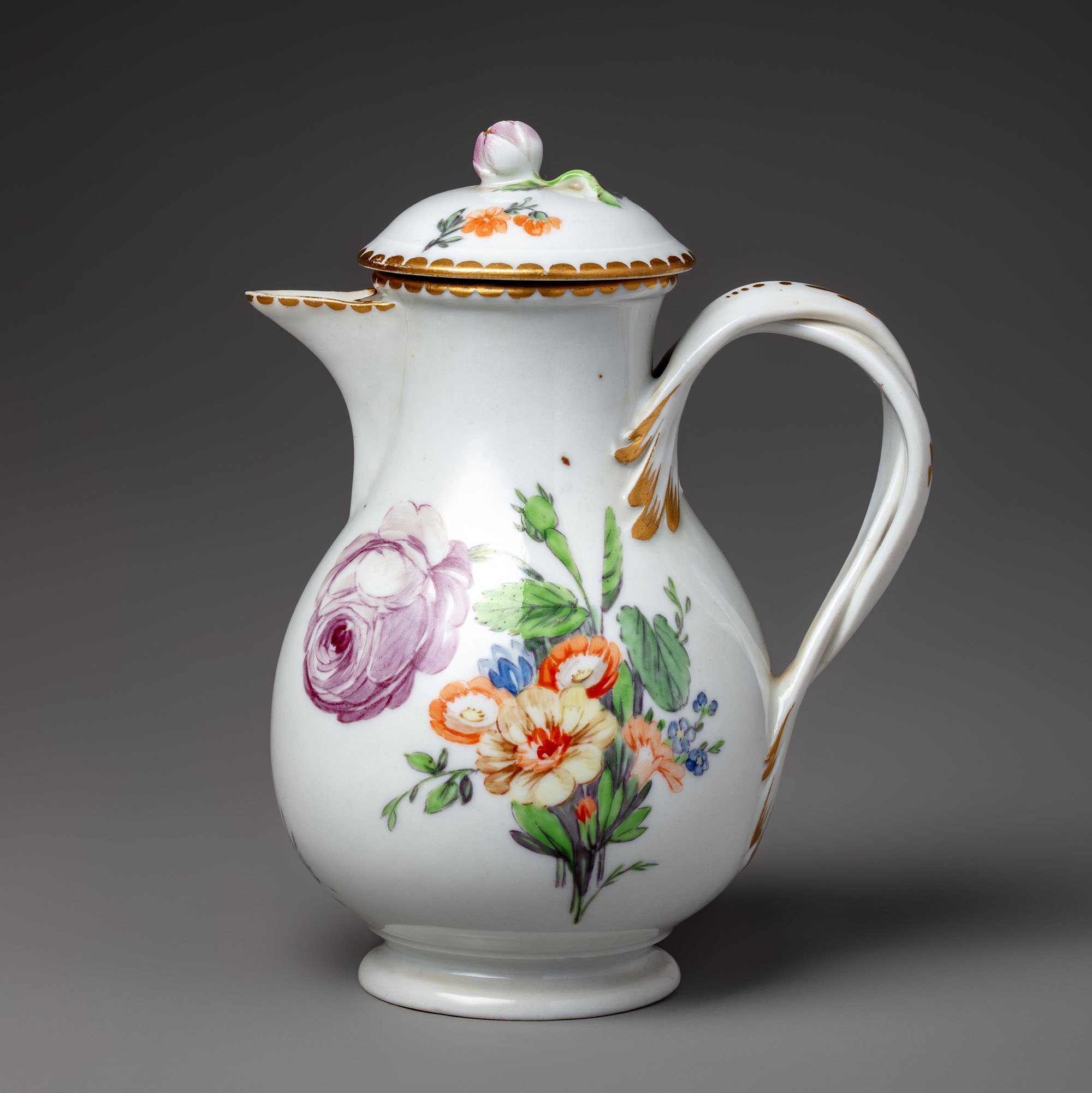 Грушевидная форма молочника с ручкой в виде перевитых стеблей с золочёными листьями также характерна для продукции Императорского фарфорового завода второй половины XVIII века, хотя также изначально имеет европейское происхождение.