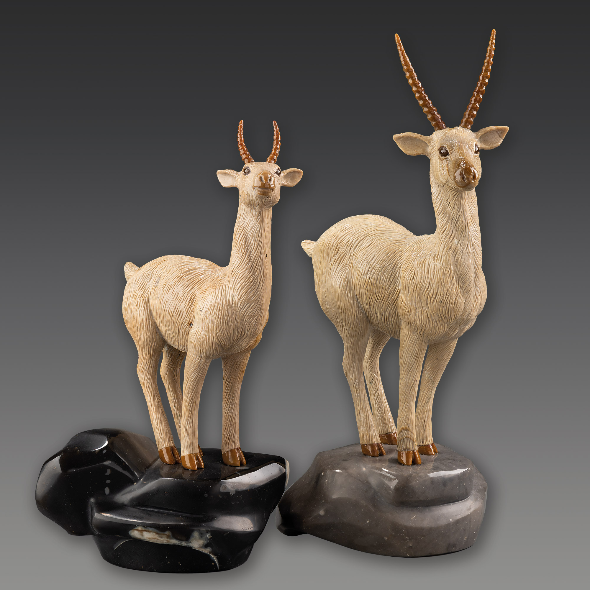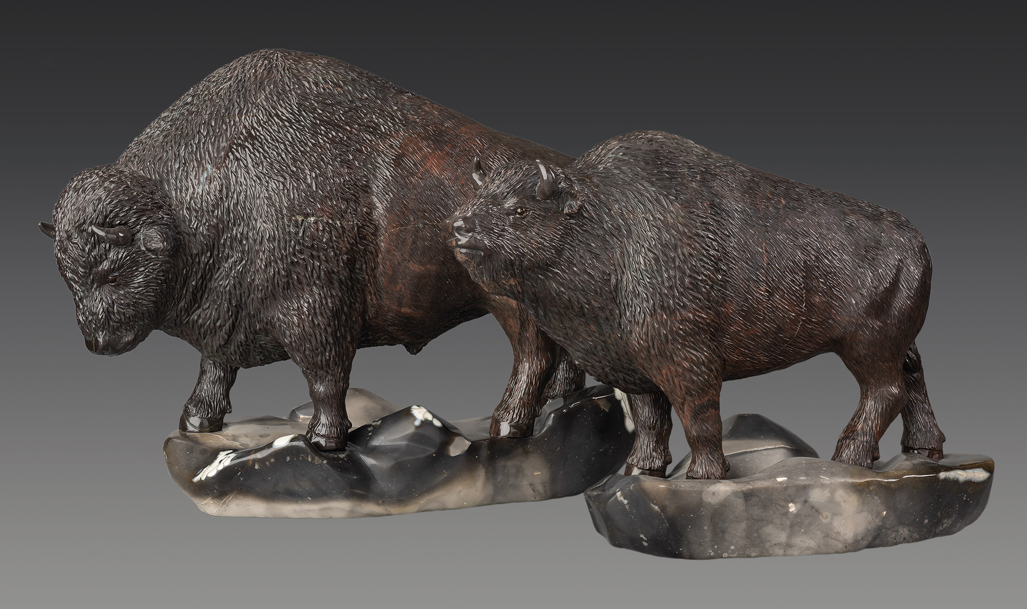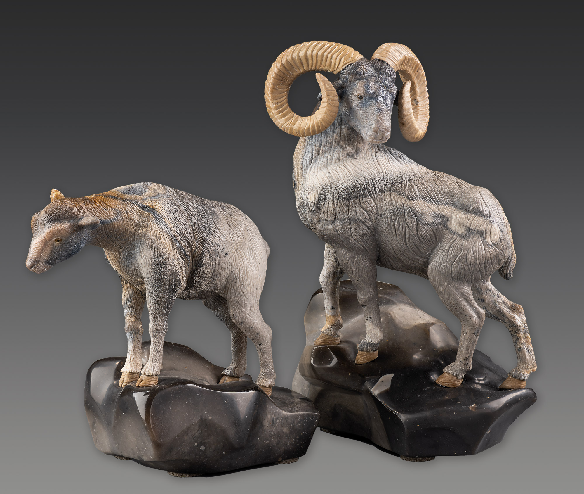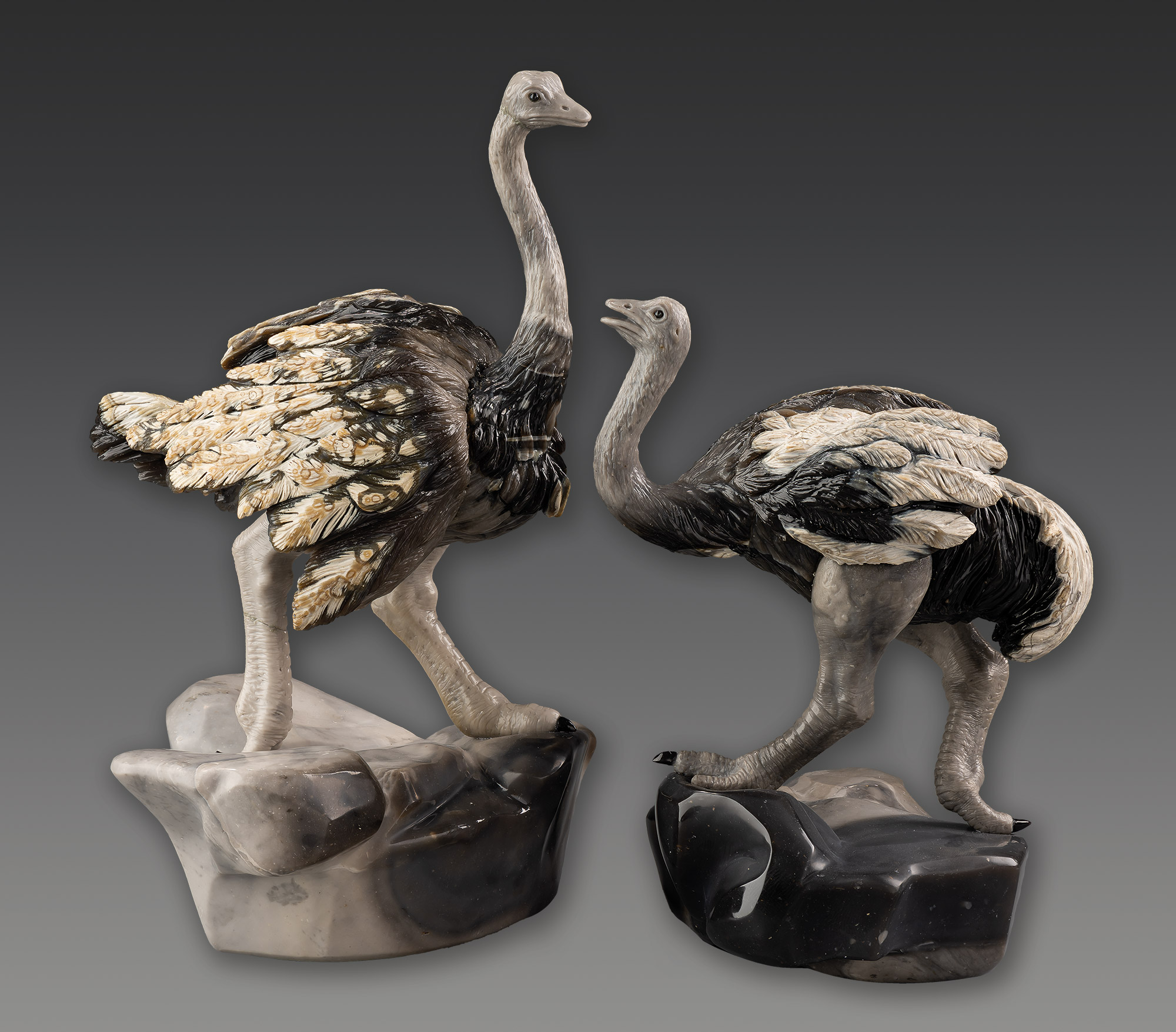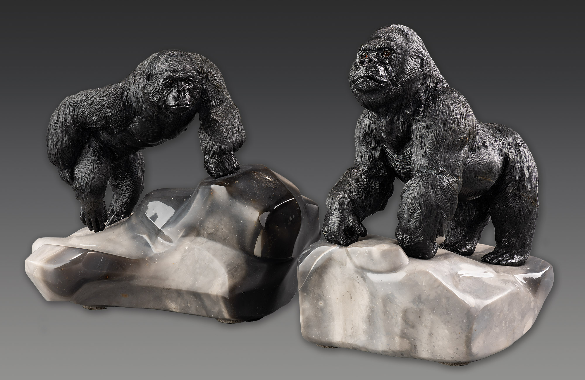 Окружающее пространство заполнено искусно вырезанными фигурками восьми пар представителей фауны южных широт на индивидуальных подставках: мощные слоны и зубры, грозные львы и смышленые обезьяны, рогатые антилопы и бараны, длинноногие страусы и аисты.