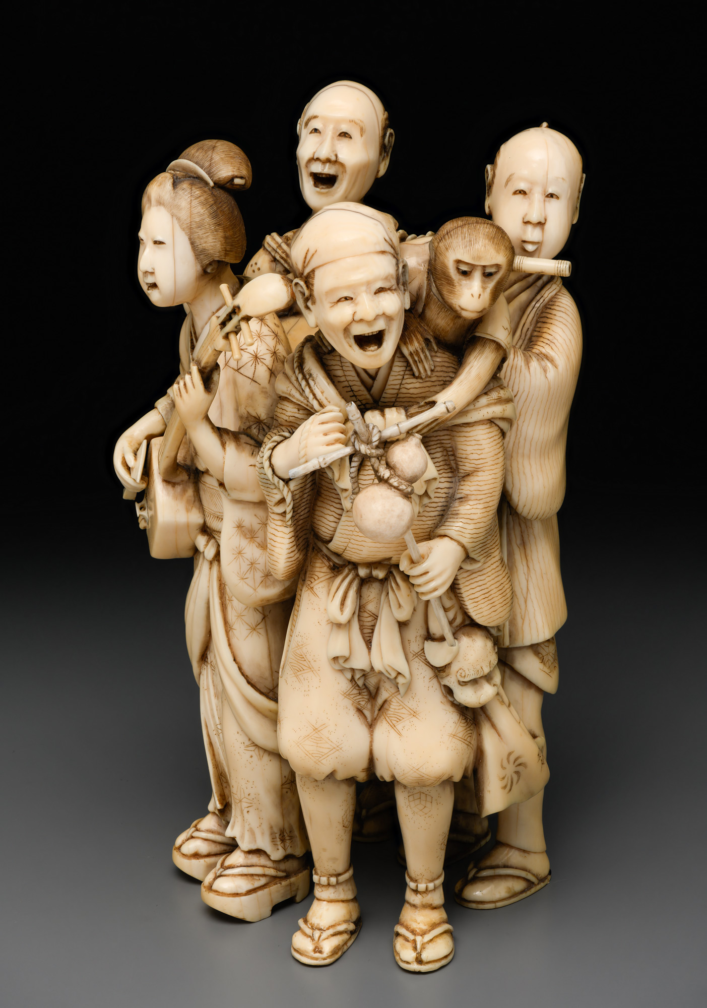 Произведение демонстрирует высокое мастерство декоративной работы по слоновой кости и выполнено на высоком художественном и технологическом уровне. Резчик проработал мельчайшие элементы произведения, которые, в свою очередь, выполнены очень натуралистично и показывают быт японцев того времени.