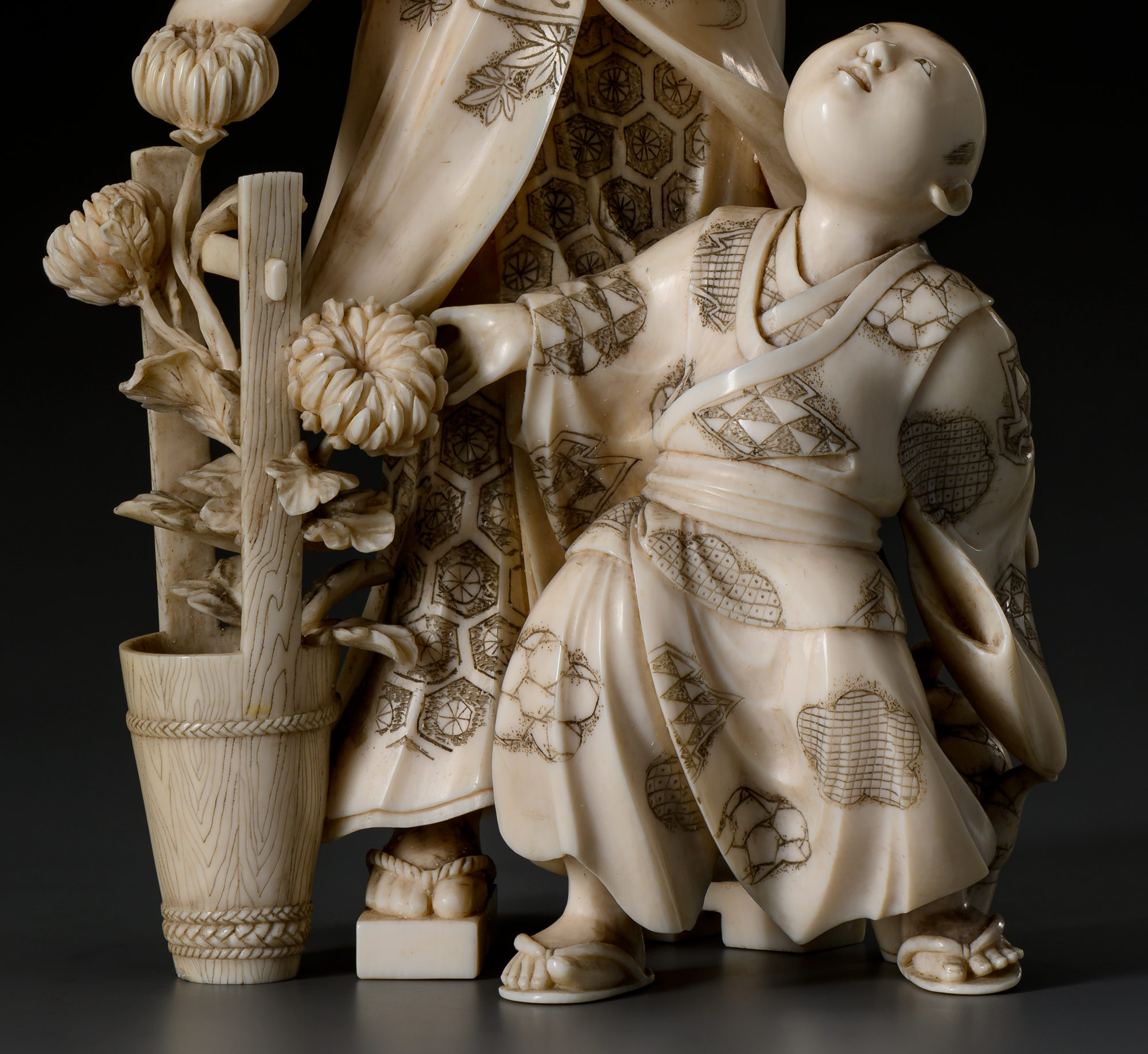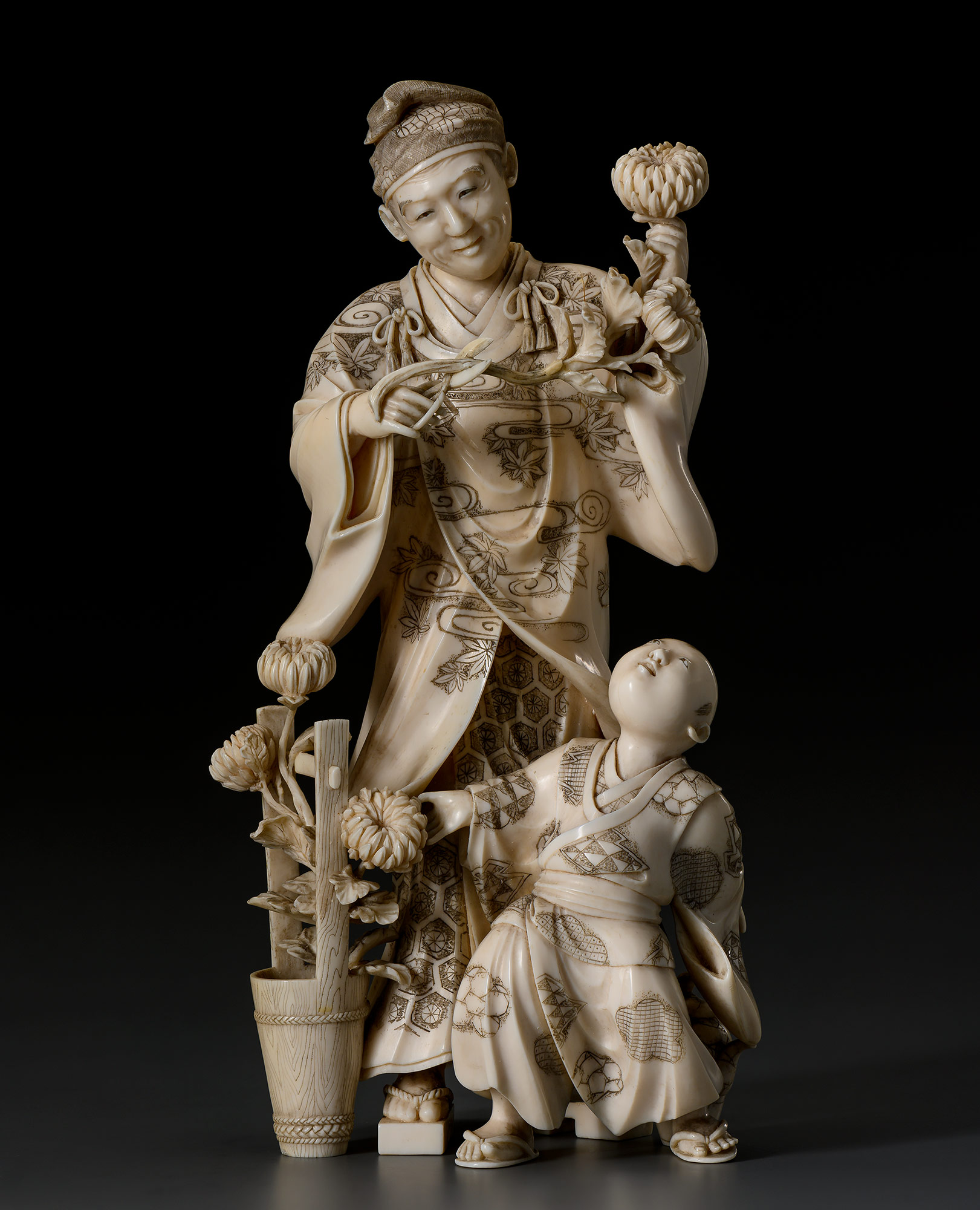 Окимоно "Мужчина и мальчик с хризантемами"