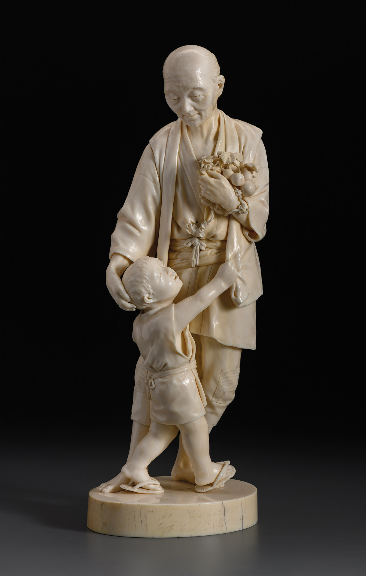 Окимоно "Старик с мальчиком и тыквенной лозой с плодами"