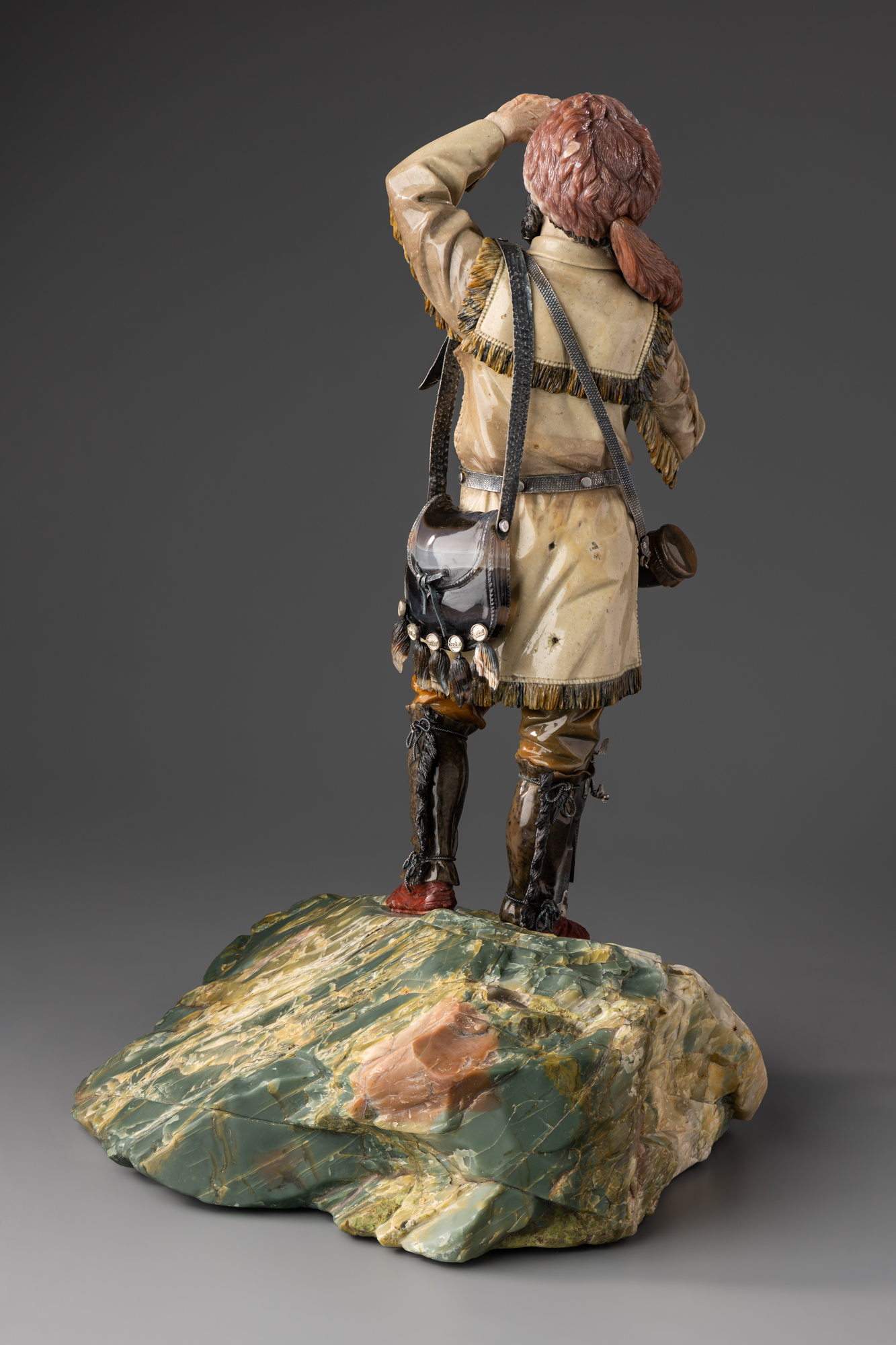 Произведение отличает соответствующая образу тонко разработанная гамма мимикрических земляных тонов. Большое внимание уделяется деталям костюма и специфической экипировке охотника.