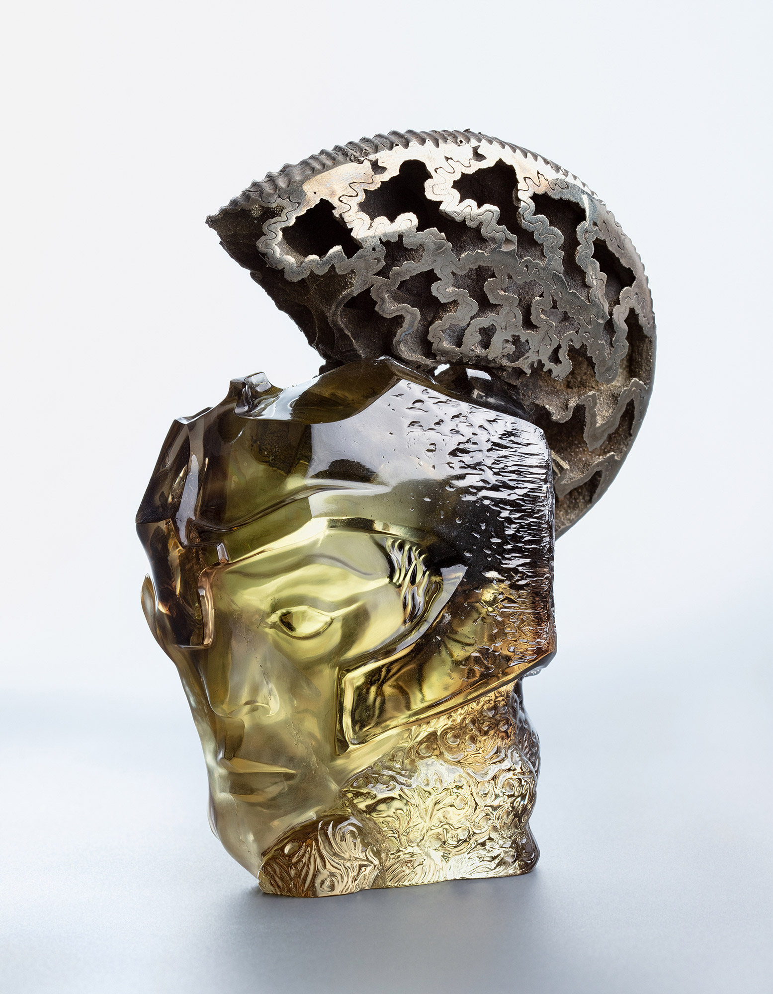 Цитрин, аммонит; резьба